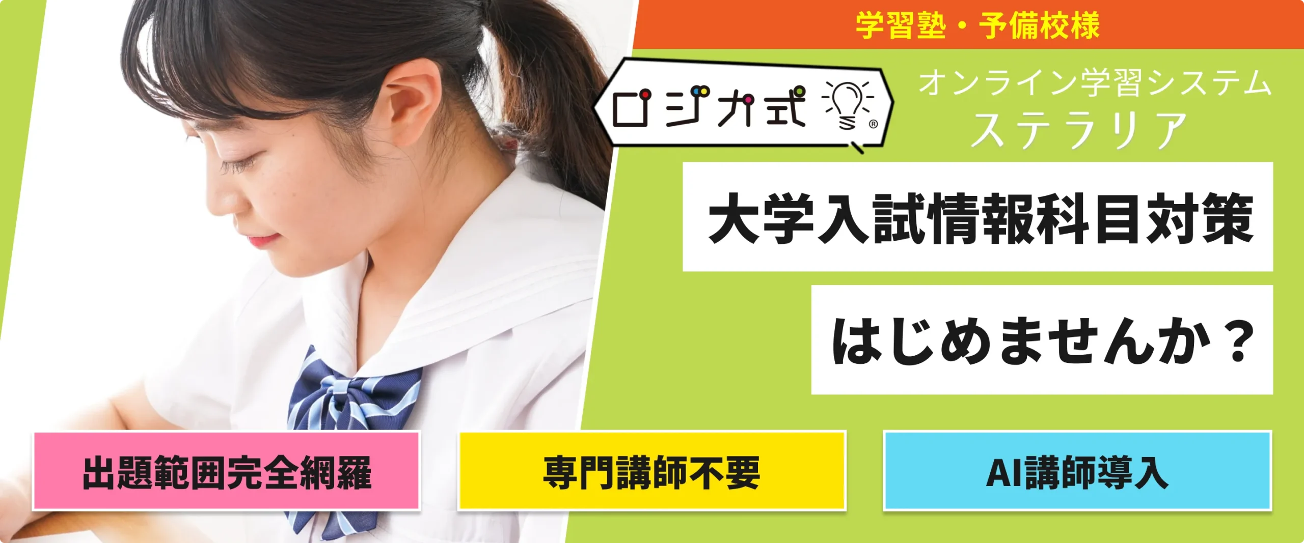 専門の講師は不要。導入するだけで、貴塾の情報Ⅰ対策が整います。
